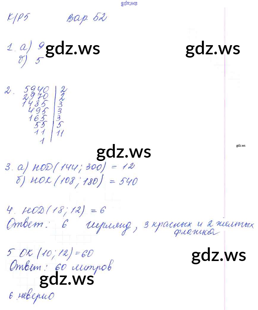Готовый и полный ответ к КР-5. Варианты - Математике 5 класс Ерина Контрольные работы УМК ФГОС