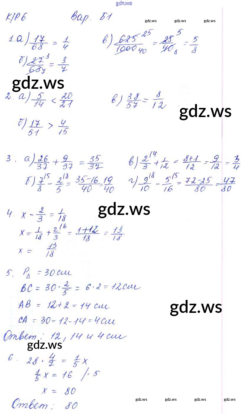 Готовый и полный ответ к КР-6. Варианты - Математике 5 класс Ерина Контрольные работы УМК ФГОС
