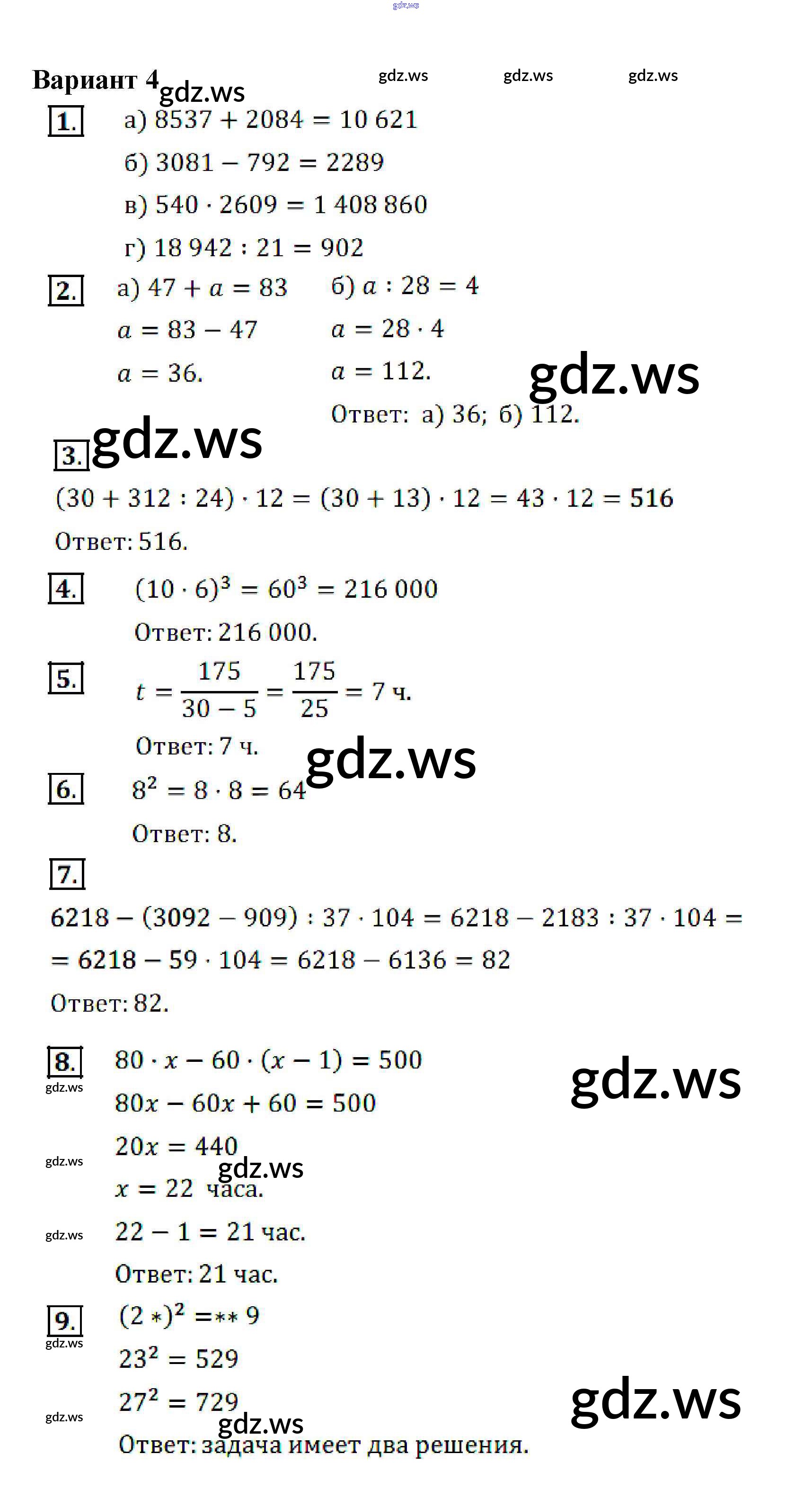 Готовый и полный ответ к КР №2. Действия с натуральными числами - Математике 5 класс Кузнецова Контрольные работы ФГОС