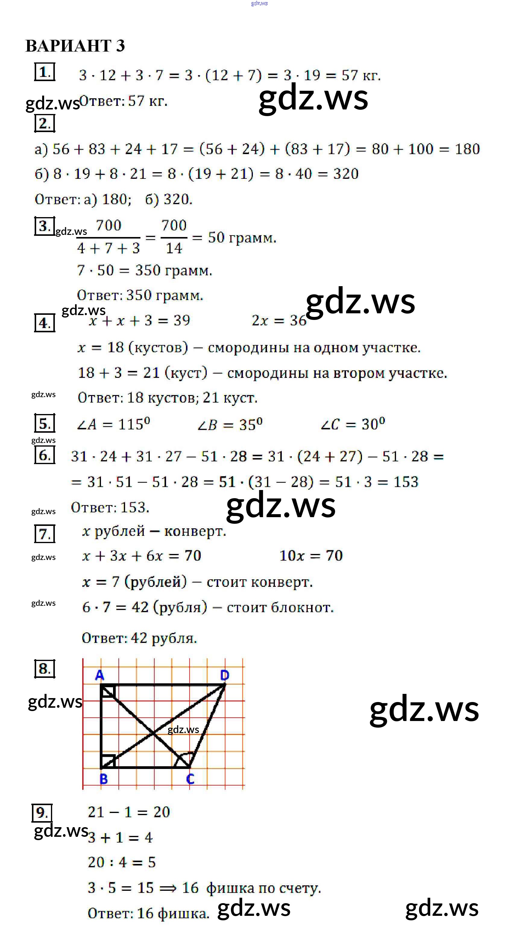 Готовый ответ КР №3. Использование свойств действий при вычислениях. Углы и многоугольники - Математике 5 класс Кузнецова Контрольные работы ФГОС