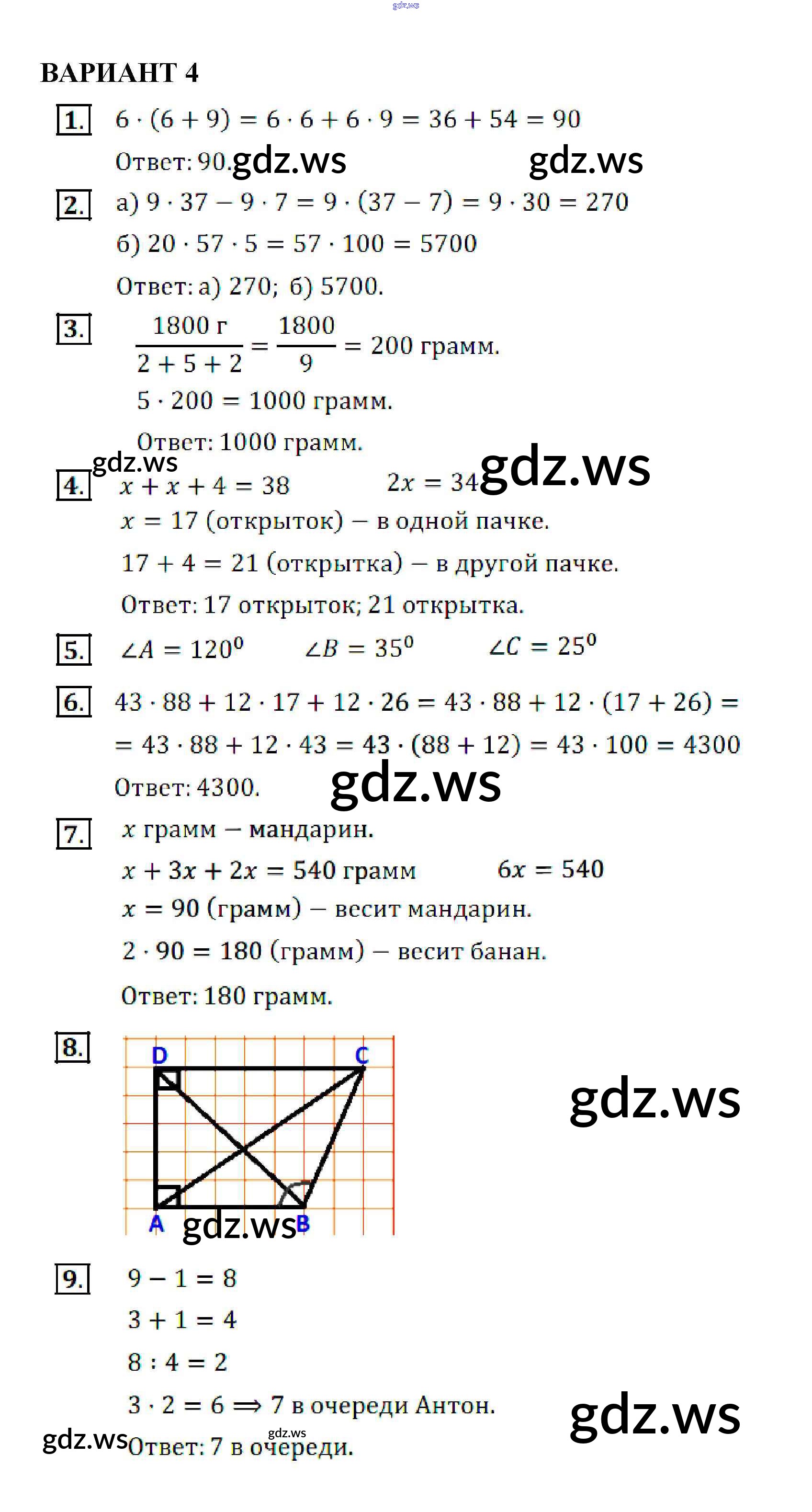 Готовый ответ КР №3. Использование свойств действий при вычислениях. Углы и многоугольники - Математике 5 класс Кузнецова Контрольные работы ФГОС