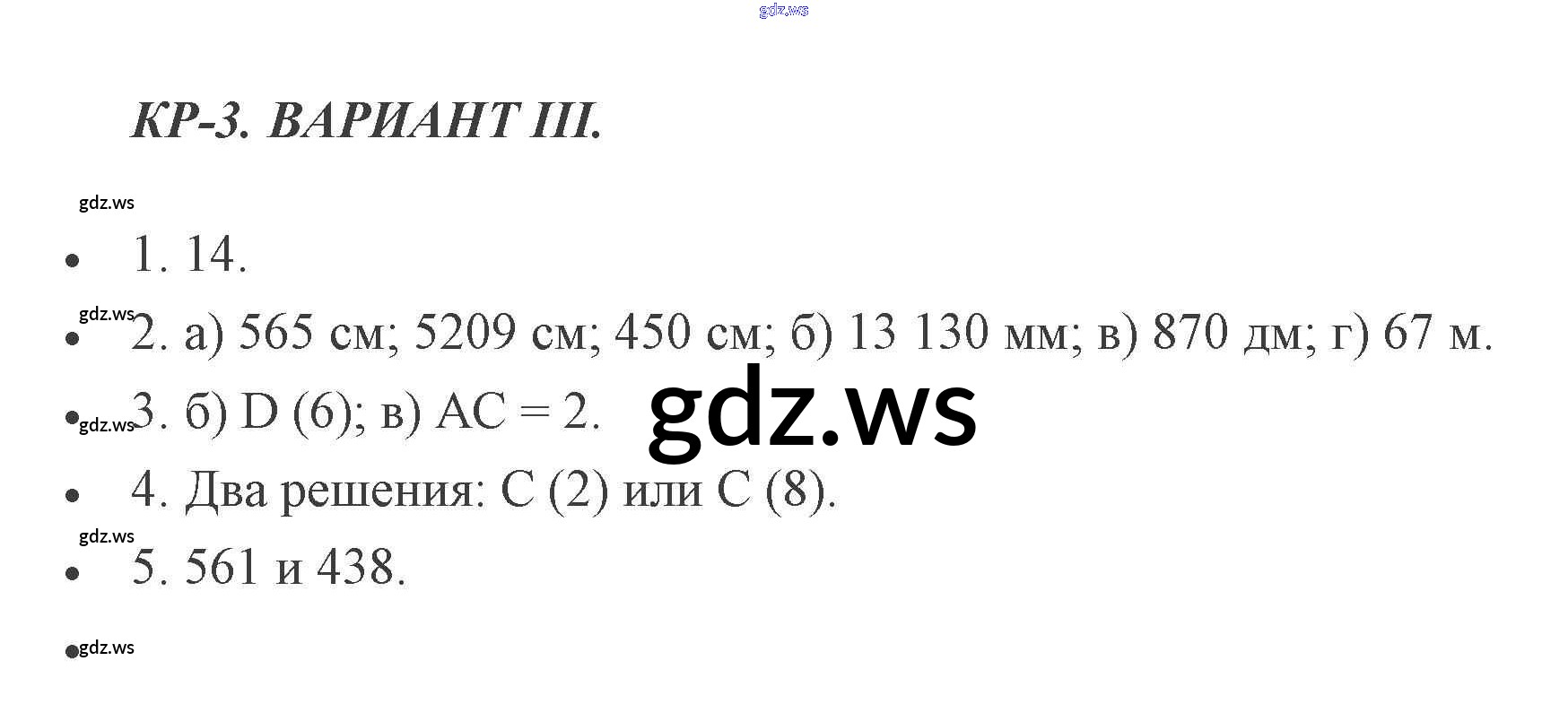 Готовый и полный ответ к КР-3. Варианты Контрольные работы - Математике 5 класс Потапов Дидактические материалы МГУ - школе ФГОС