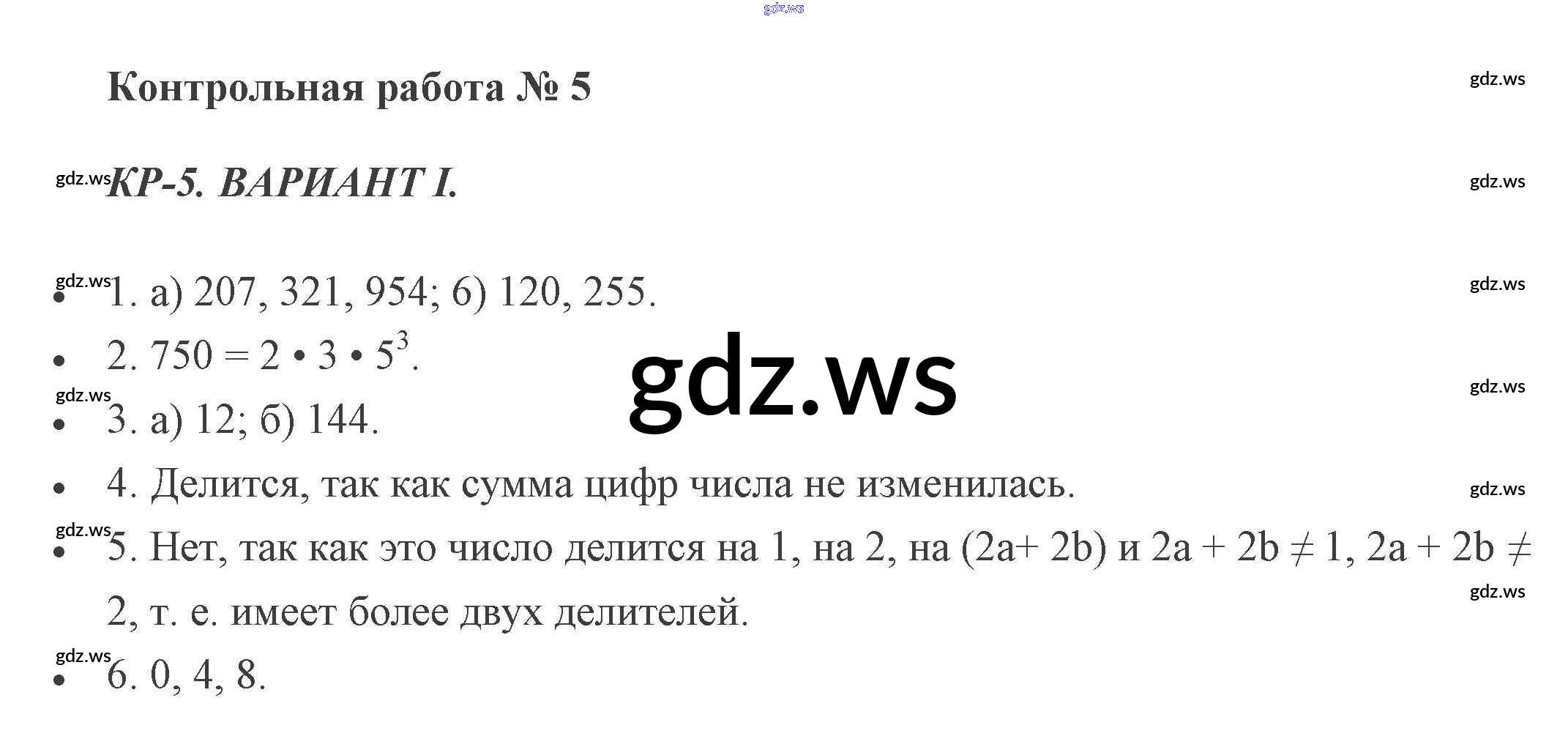 Готовый и полный ответ к КР-5. Варианты Контрольные работы - Математике 5 класс Потапов Дидактические материалы МГУ - школе ФГОС