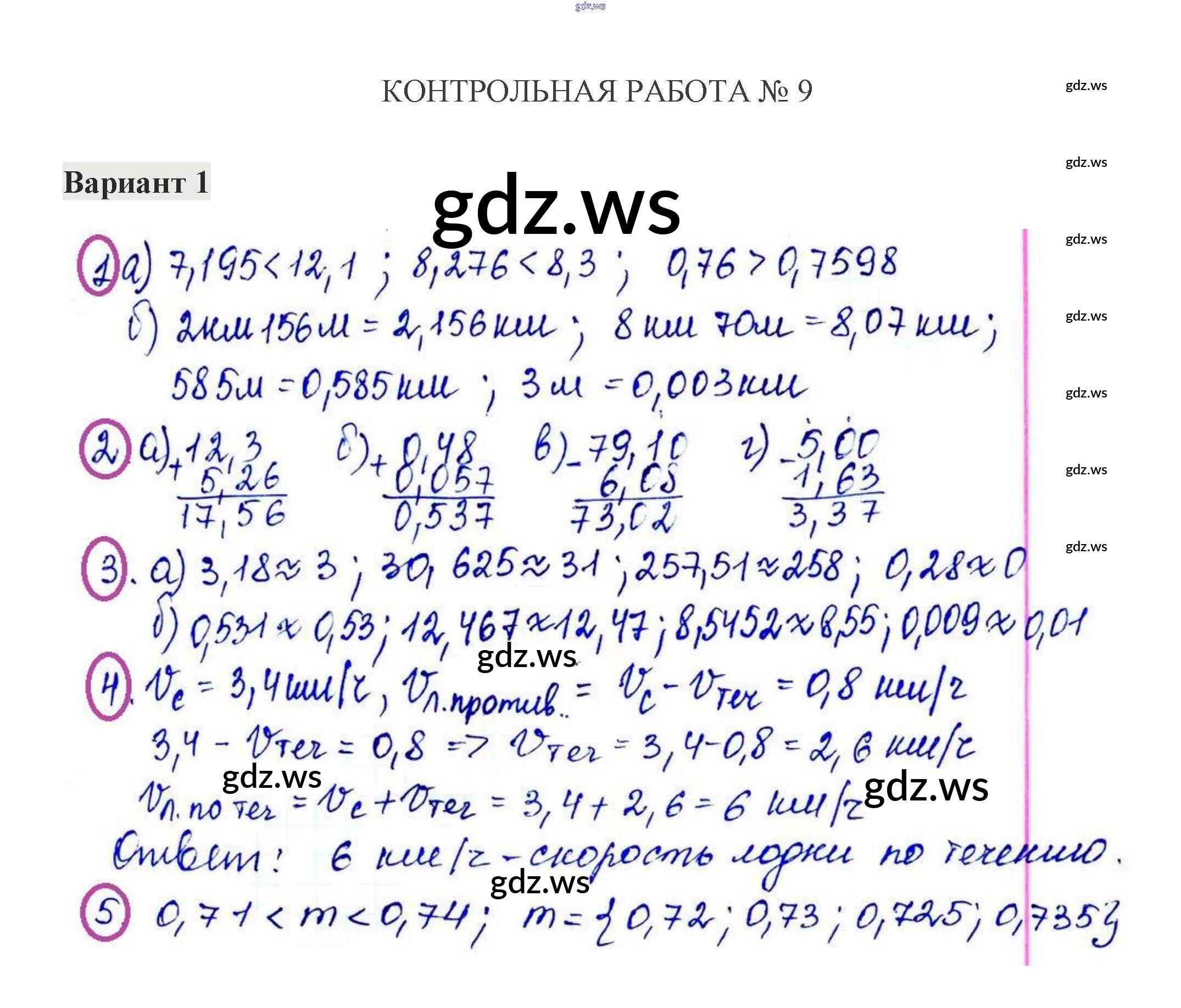 Готовый и полный ответ к КР-9. Варианты - Математике 5 класс Жохов Контрольные работы ФГОС