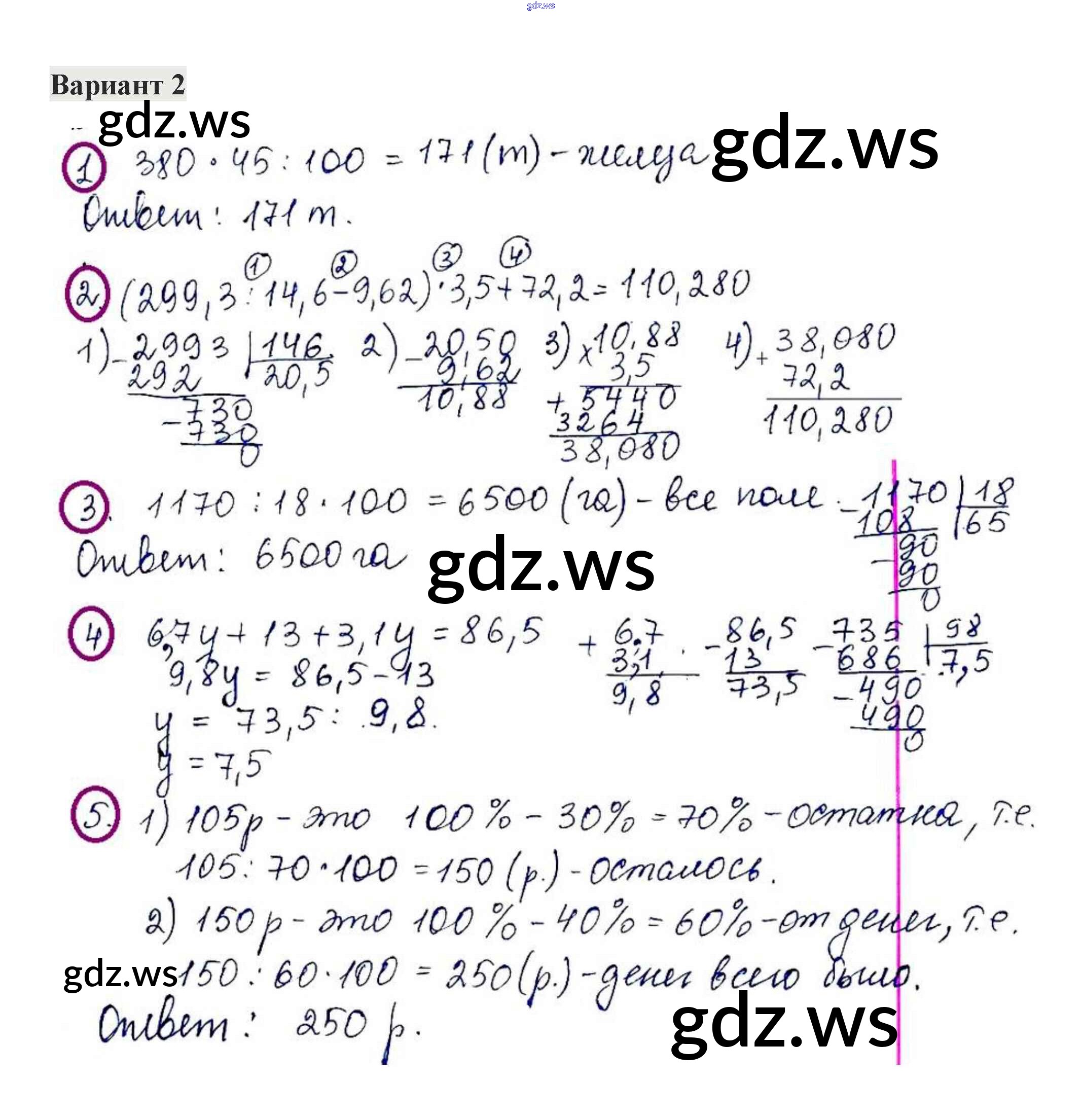 Готовый и полный ответ к КР-12. Варианты - Математике 5 класс Жохов Контрольные работы ФГОС