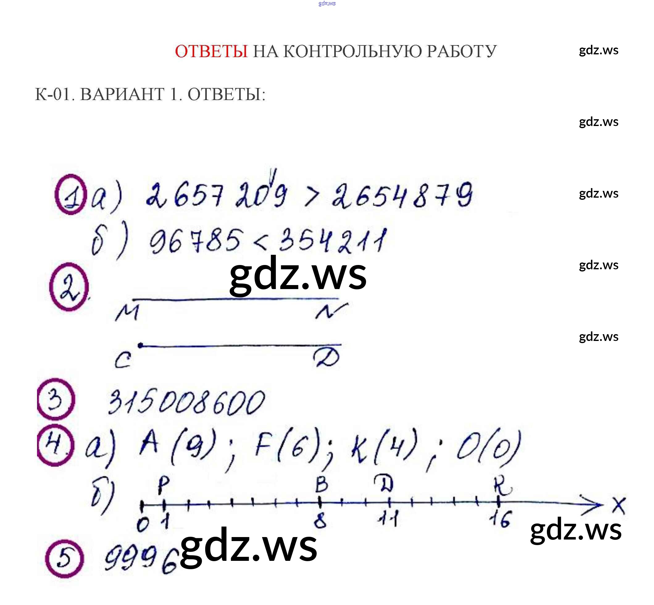 Готовый и полный ответ к КР-1. Варианты - Математике 5 класс Жохов Контрольные работы ФГОС