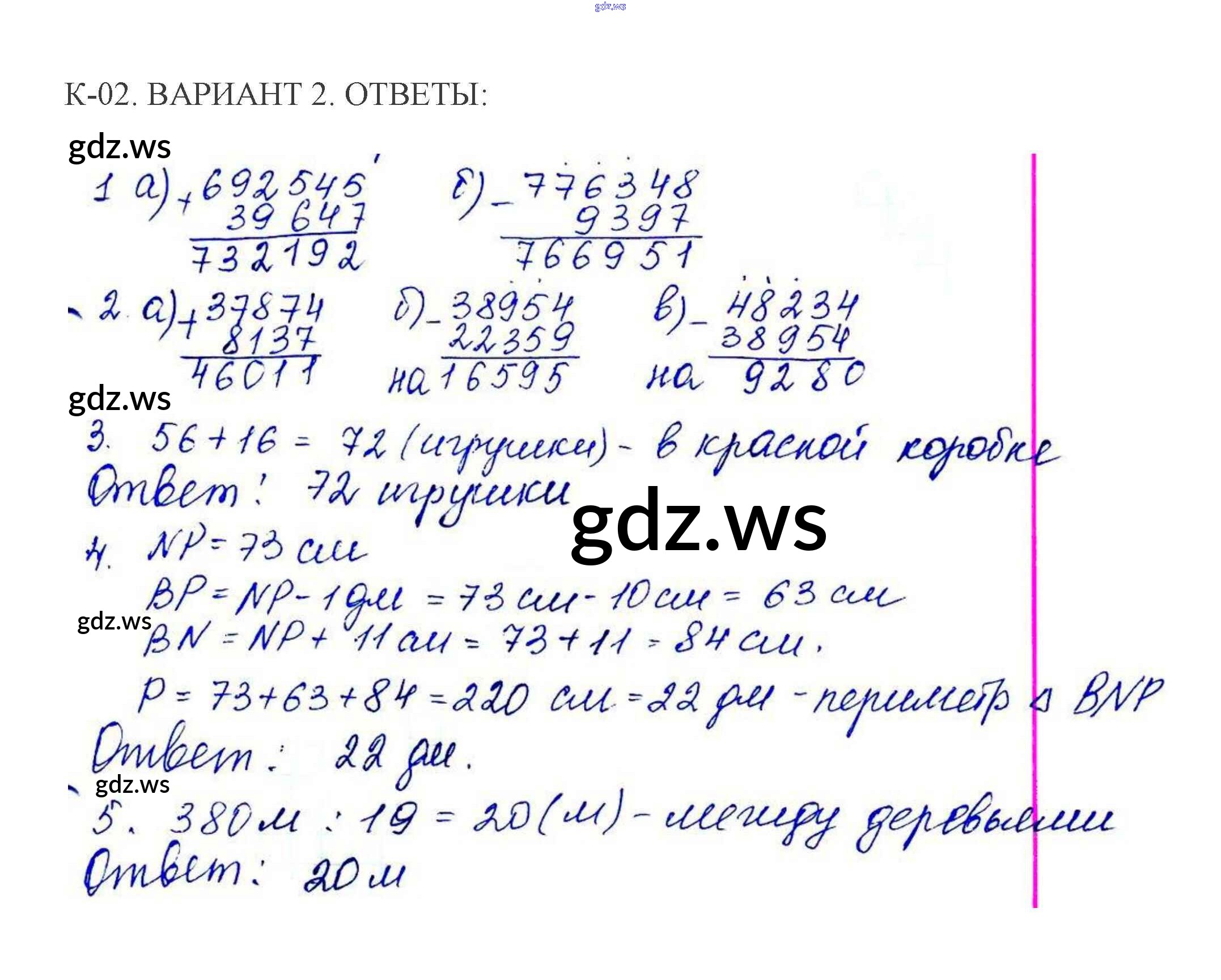 Готовый и полный ответ к КР-2. Варианты - Математике 5 класс Жохов Контрольные работы ФГОС