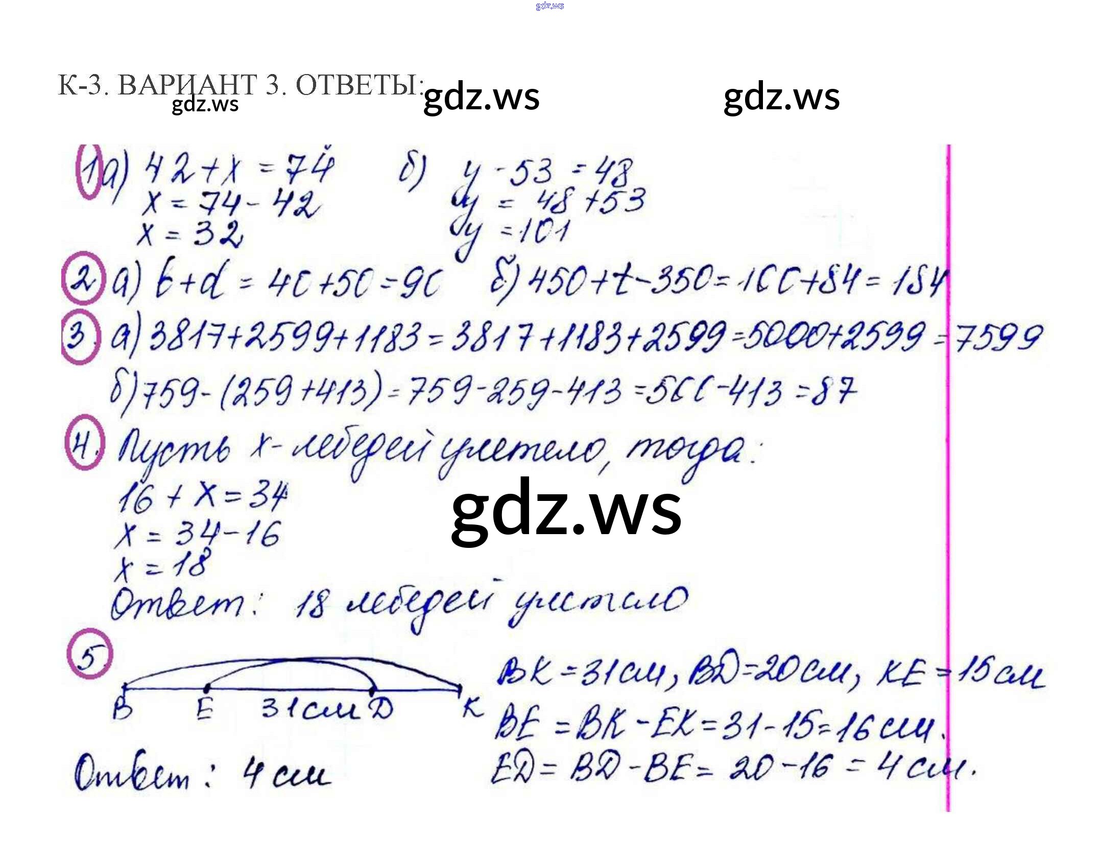 Готовый и полный ответ к КР-3. Варианты - Математике 5 класс Жохов Контрольные работы ФГОС