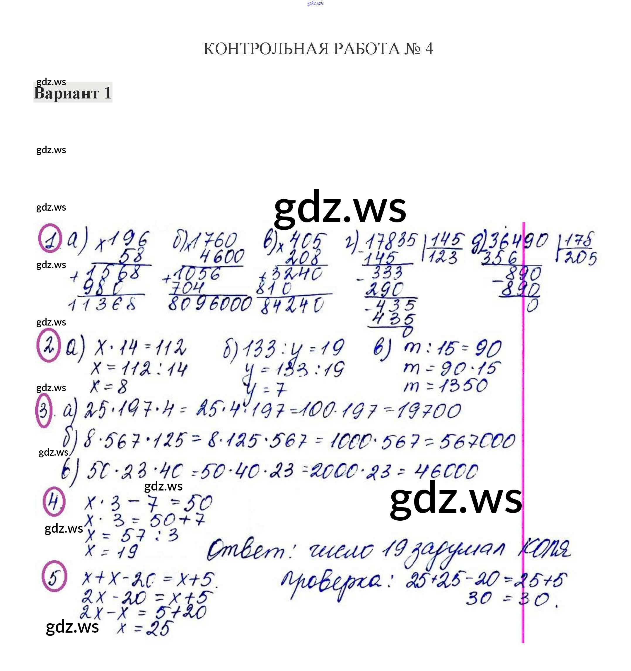 Готовый и полный ответ к КР-4. Варианты - Математике 5 класс Жохов Контрольные работы ФГОС