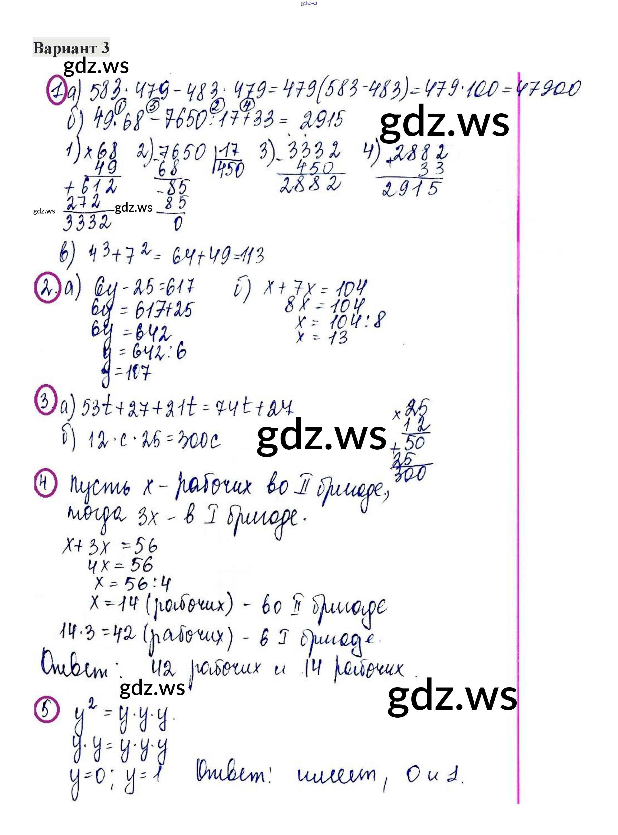 Готовый и полный ответ к КР-5. Варианты - Математике 5 класс Жохов Контрольные работы ФГОС