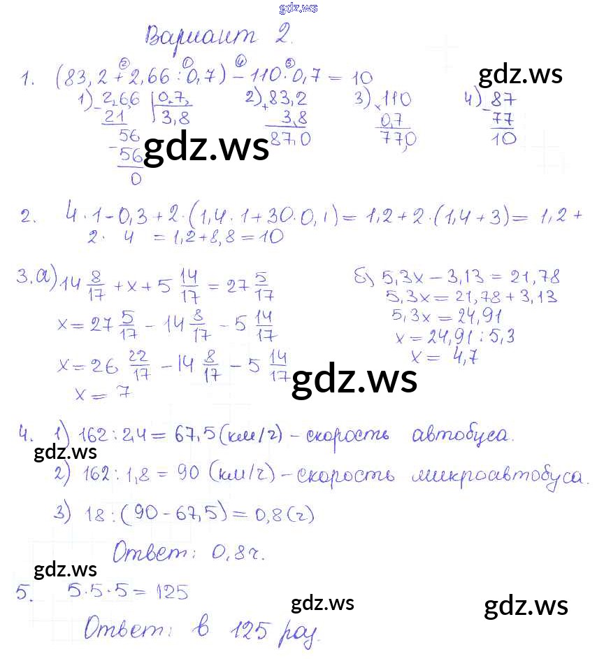 Готовый и полный ответ к КР-15. Варианты Контрольные работы - Математике 5 класс Журавлев Контрольные и самостоятельные работы УМК ФГОС