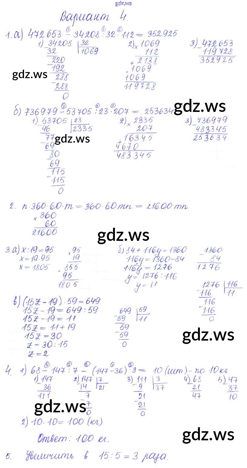 Готовый и полный ответ к КР-4. Варианты Контрольные работы - Математике 5 класс Журавлев Контрольные и самостоятельные работы УМК ФГОС