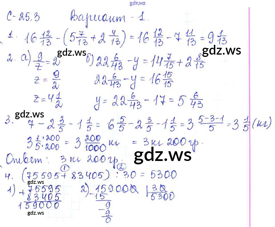 Готовый ответ СР-25.3 - Математике 5 класс Зубарева Самостоятельные работы ФГОС
