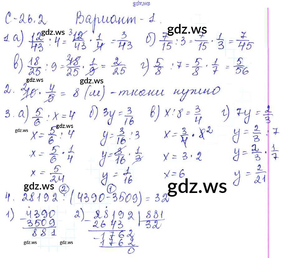 Готовый и полный ответ к СР-26.2 - Математике 5 класс Зубарева Самостоятельные работы ФГОС