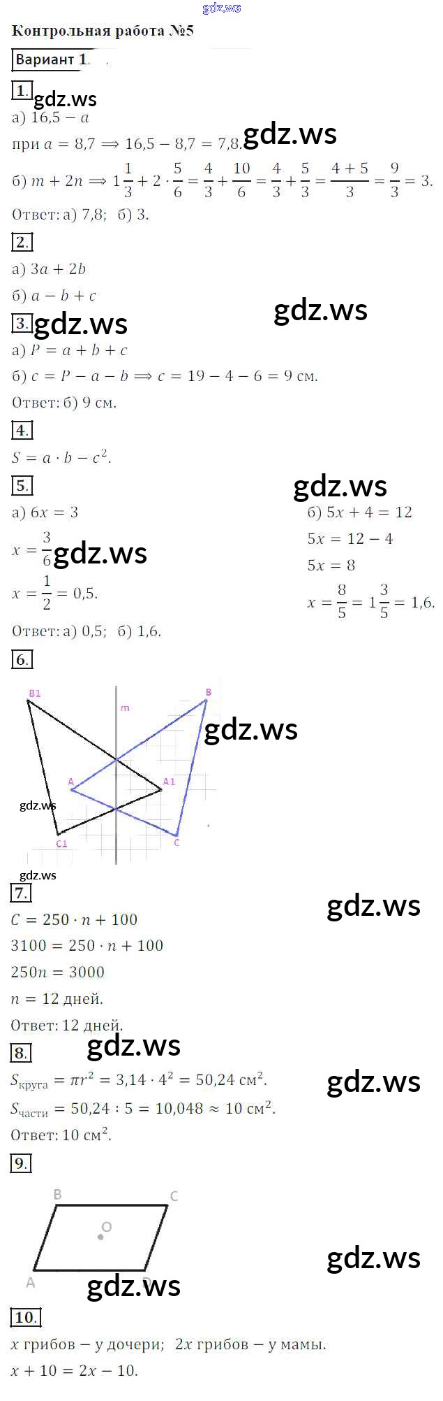Готовый и полный ответ к КР-5. Варианты - Математике 6 класс Кузнецова Контрольные работы ФГОС