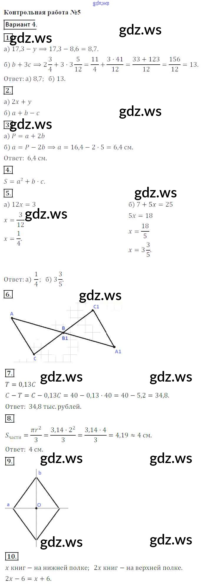 Готовый и полный ответ к КР-5. Варианты - Математике 6 класс Кузнецова Контрольные работы ФГОС