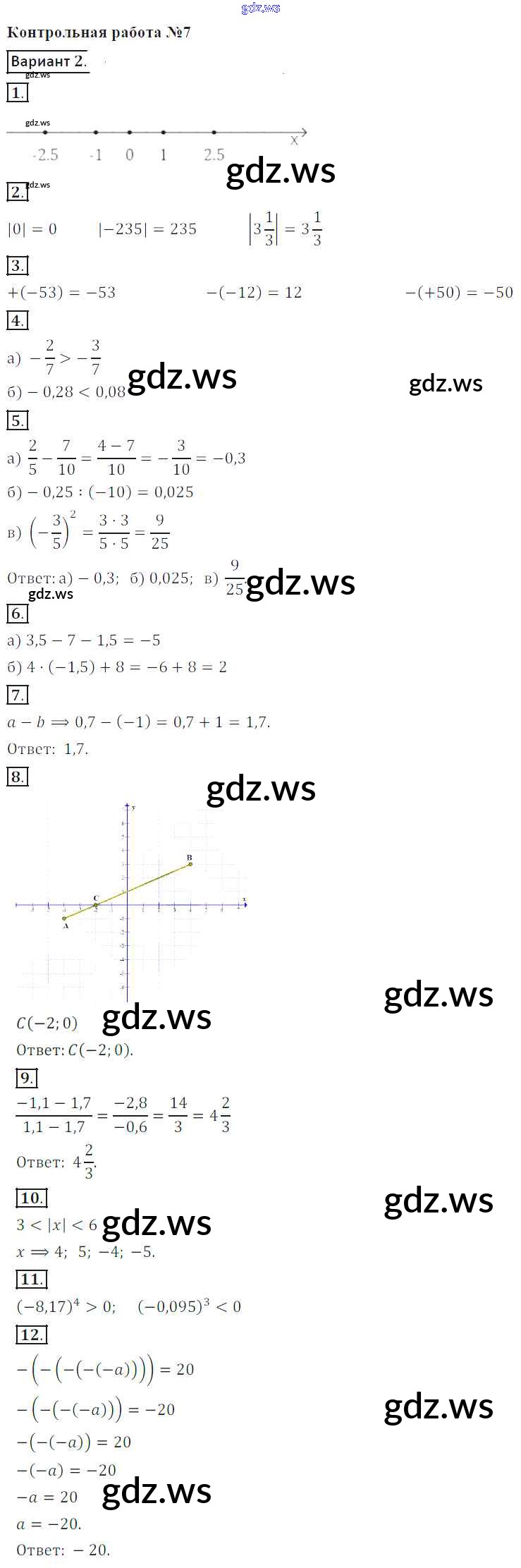 Готовый и полный ответ к КР-7. Варианты - Математике 6 класс Кузнецова Контрольные работы ФГОС