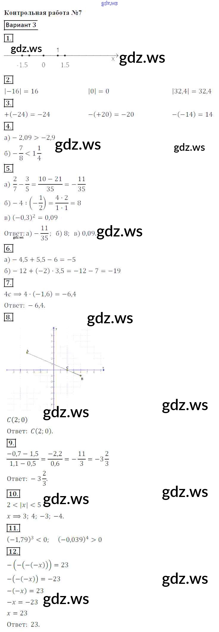 Готовый и полный ответ к КР-7. Варианты - Математике 6 класс Кузнецова Контрольные работы ФГОС
