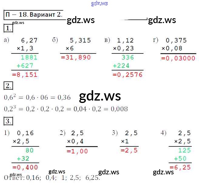 Готовый и полный ответ к ПР-18 Проверочные работы - Математике 6 класс Кузнецова Дидактические материалы ФГОС