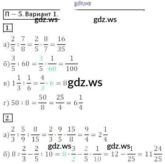 Готовый и полный ответ к ПР-5 Проверочные работы - Математике 6 класс Кузнецова Дидактические материалы ФГОС