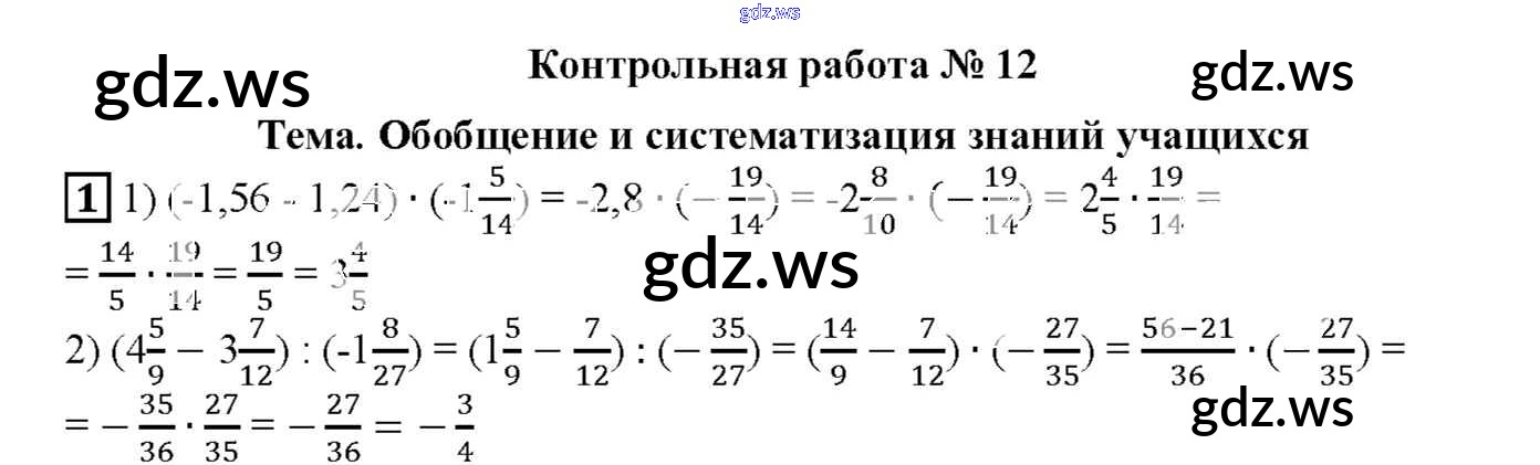 Готовый и полный ответ к КР-12. Варианты Контрольные работы - Математике 6 класс Мерзляк Дидактические материалы Алгоритм успеха ФГОС