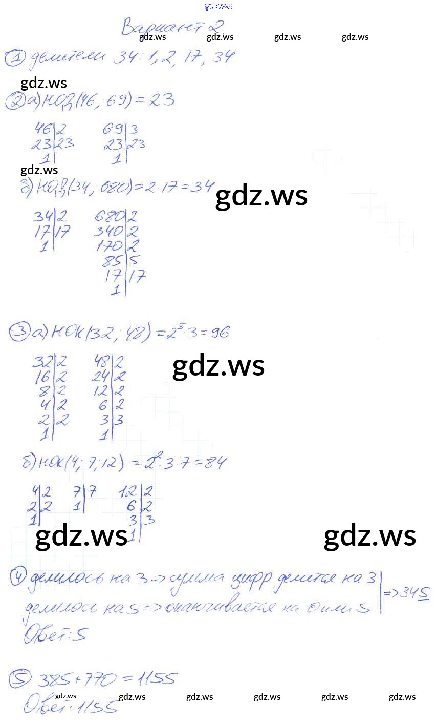Готовый и полный ответ к КР-1. Варианты Контрольные работы - Математике 6 класс Попов Самостоятельные и контрольные работы УМК ФГОС