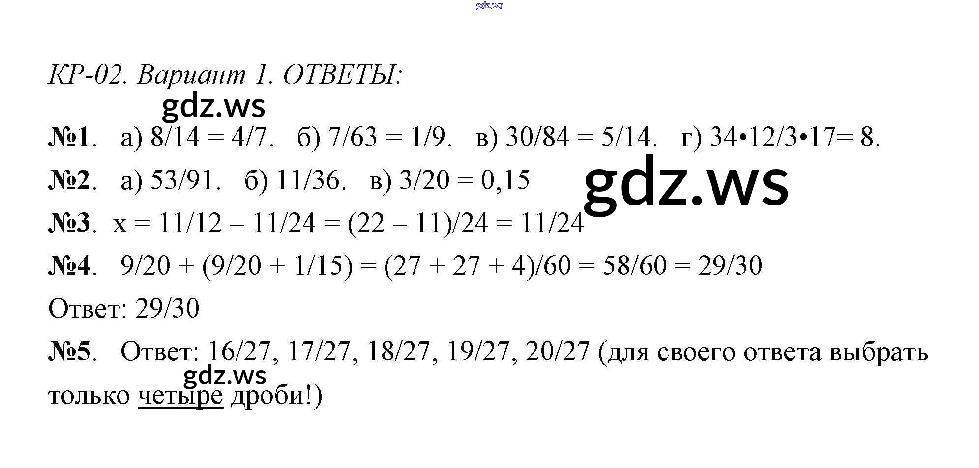 Готовый и полный ответ к Контрольная работа 2 (Варианты) Контрольные работы - Математике 6 класс Попова Контрольно-измерительные материалы (КИМ) ФГОС