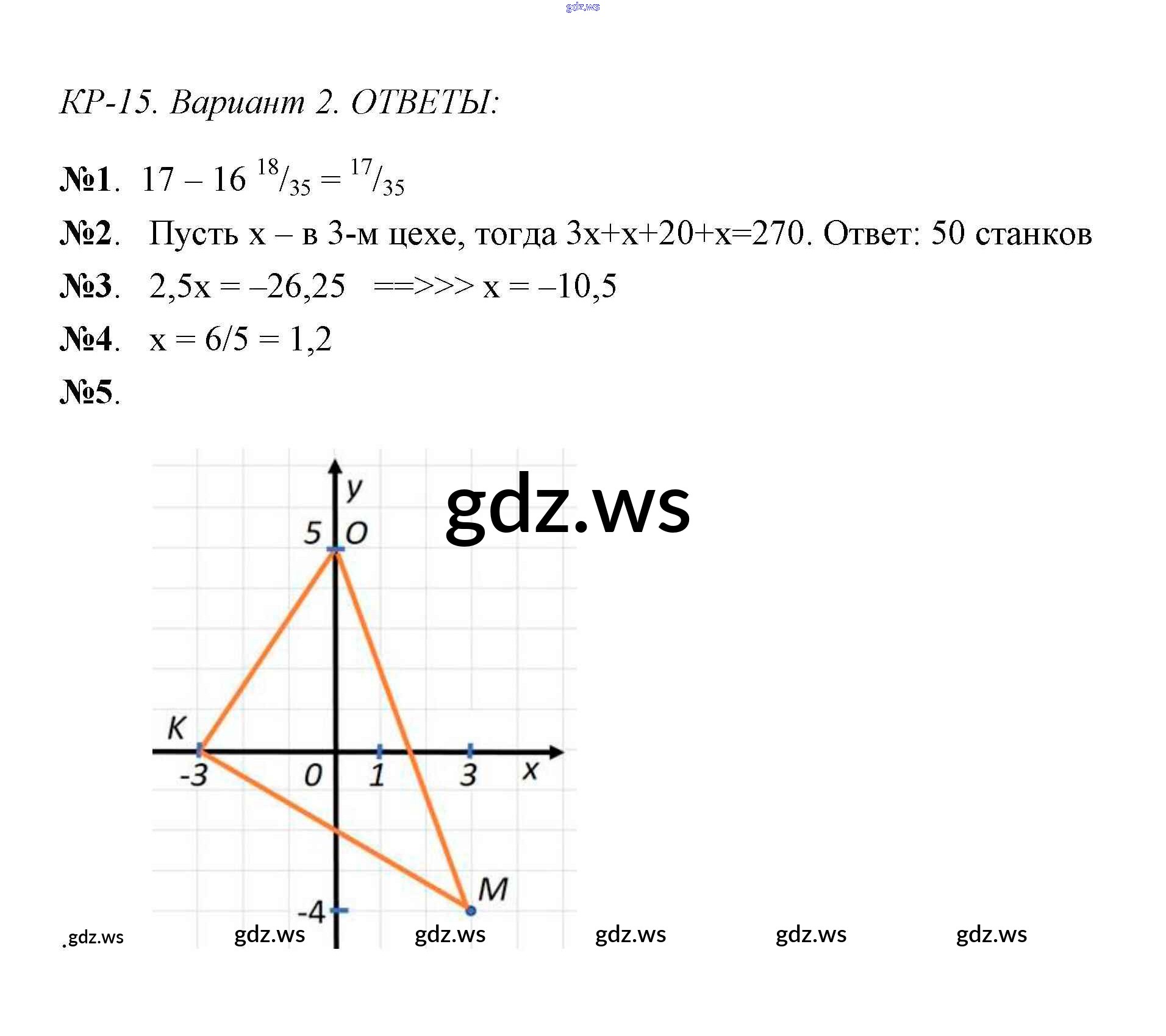 Готовый и полный ответ к Контрольная работа 15 (Варианты) Контрольные работы - Математике 6 класс Попова Контрольно-измерительные материалы (КИМ) ФГОС