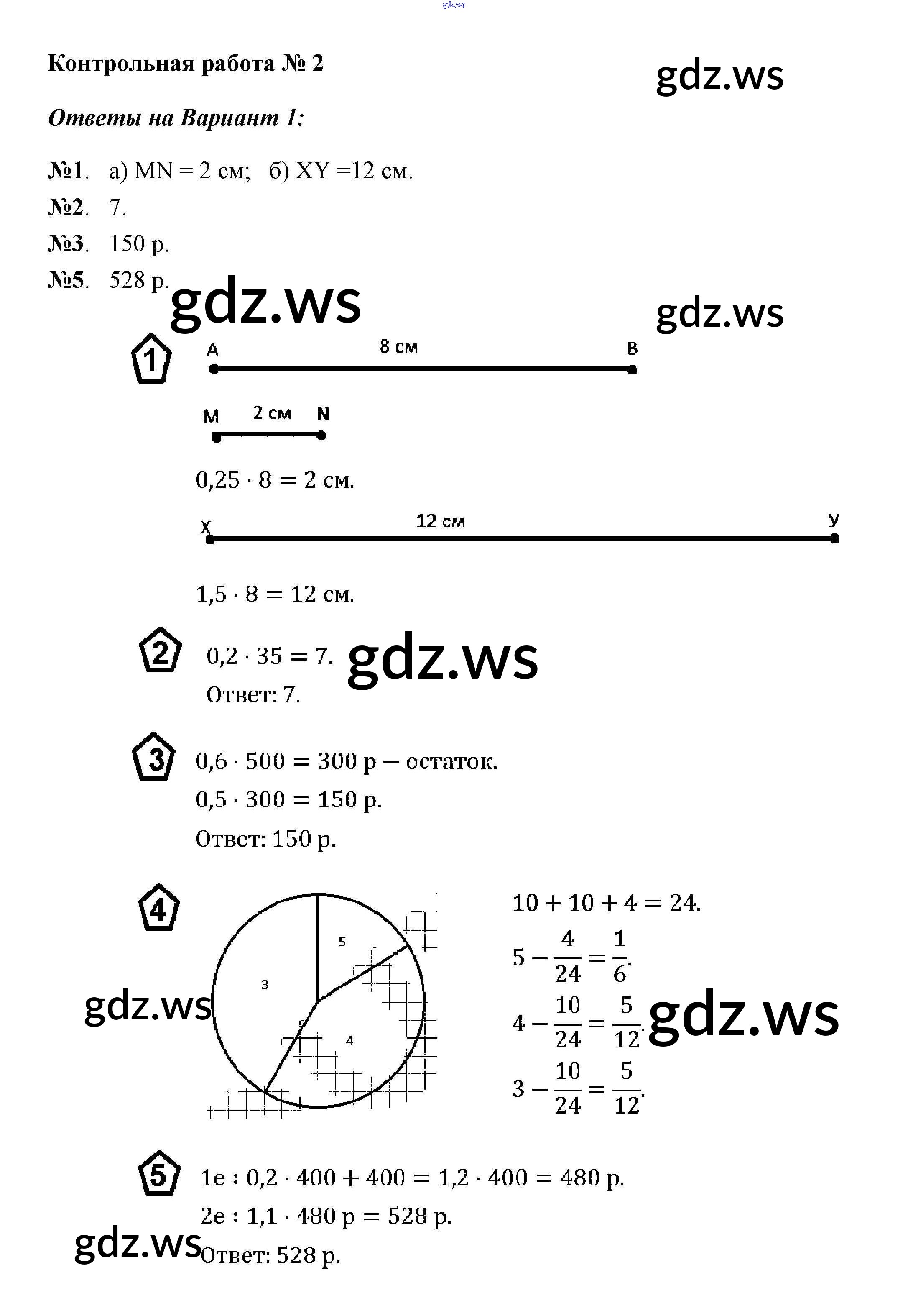 Готовый и полный ответ к КР-2. Варианты Контрольные работы - Математике 6 класс Потапов Дидактические материалы МГУ - школе ФГОС