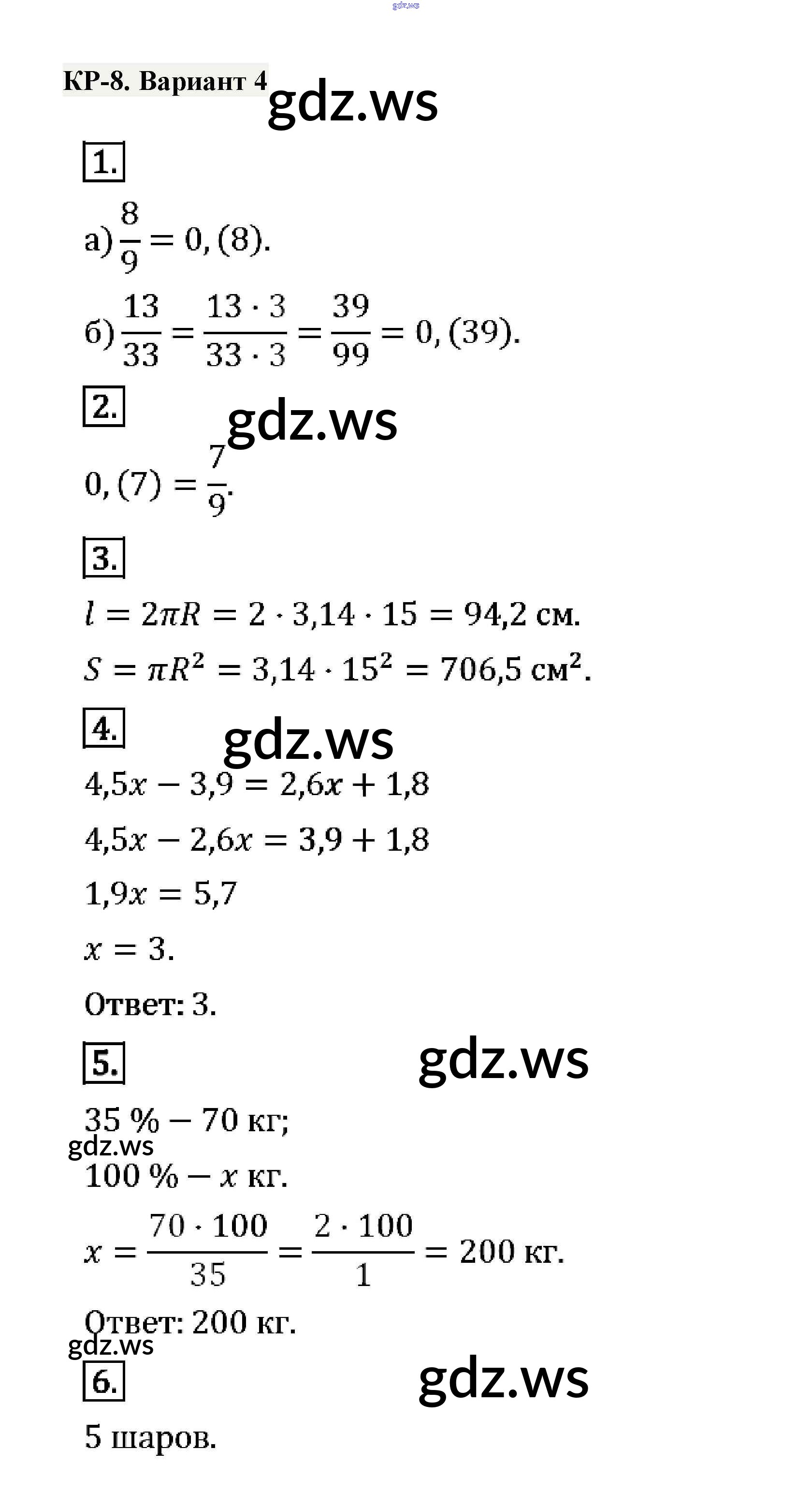 Готовый и полный ответ к КР-8. Варианты Контрольные работы - Математике 6 класс Потапов Дидактические материалы МГУ - школе ФГОС