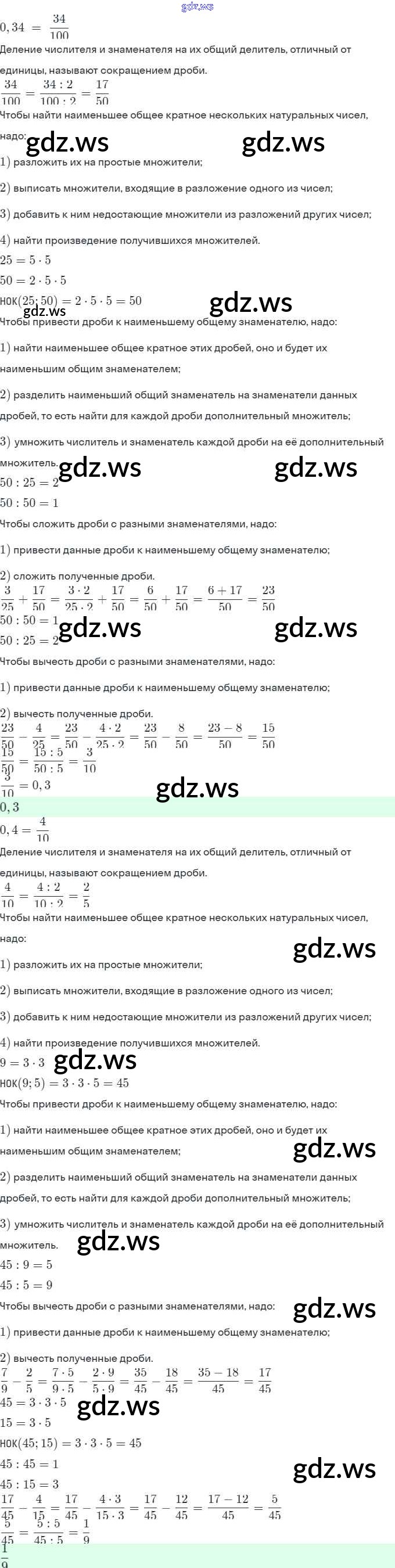 Готовый и полный ответ к §2. Сложение и вычитание дробей с разными знаменателями Глава 1 - Математике 6 класс Виленкин Учебник ФГОС