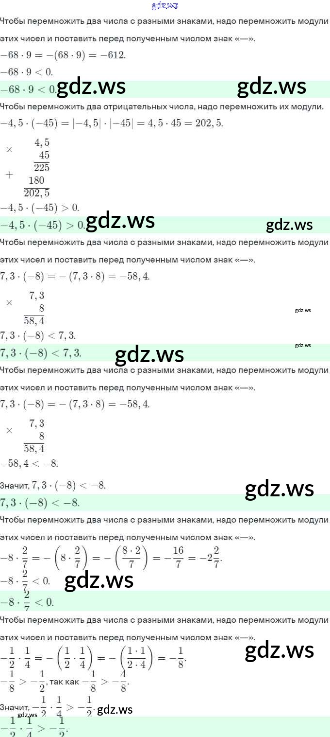 Готовый и полный ответ к §7. Умножение и деление положительных и отрицательных чисел Глава 2 - Математике 6 класс Виленкин Учебник ФГОС