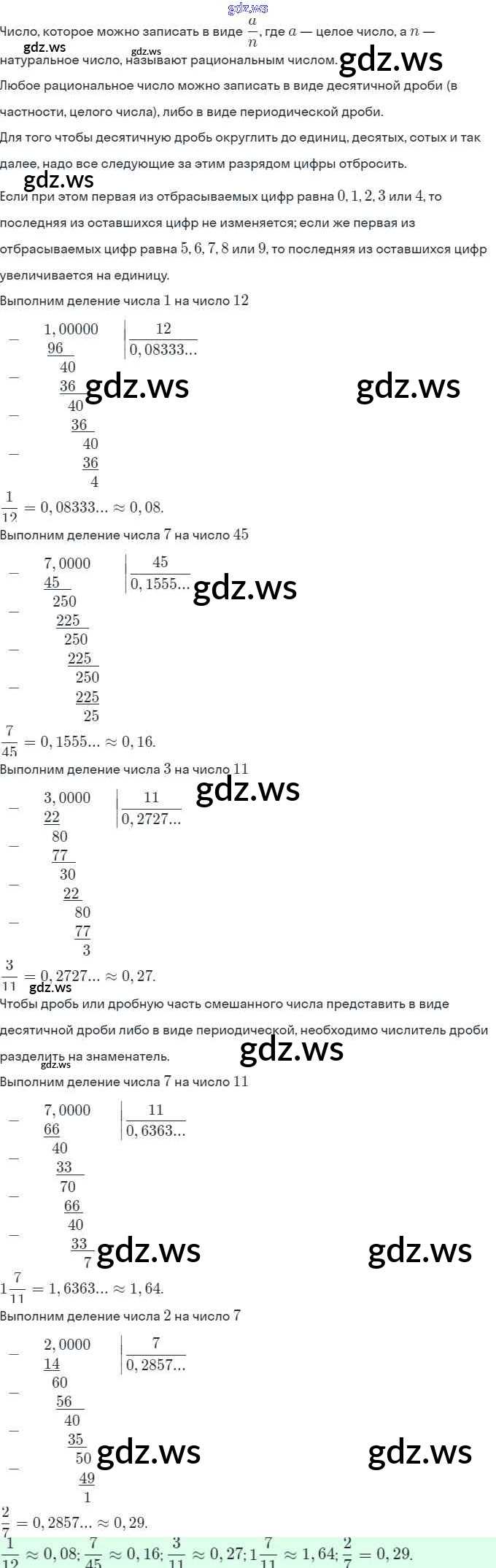 Готовый и полный ответ к §7. Умножение и деление положительных и отрицательных чисел Глава 2 - Математике 6 класс Виленкин Учебник ФГОС