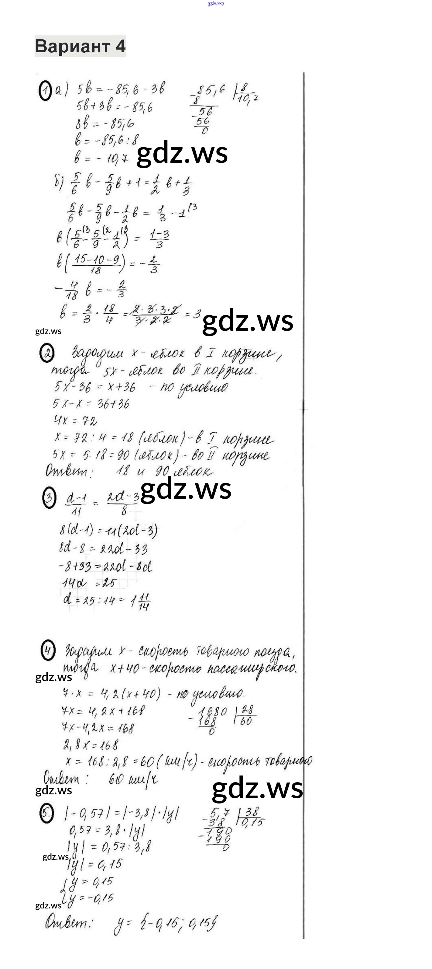 Готовый и полный ответ к КР-13. Варианты - Математике 6 класс Жохов Контрольные работы ФГОС