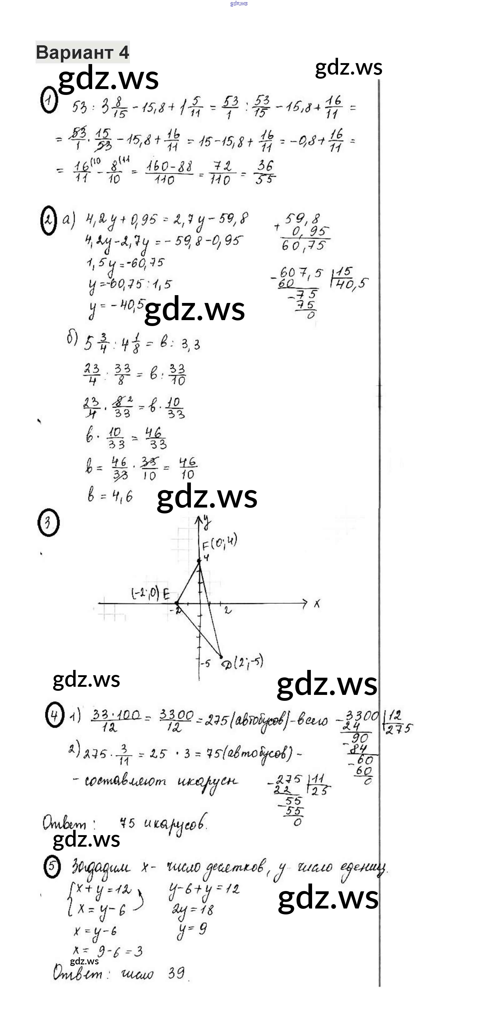 Готовый и полный ответ к КР-15. Варианты - Математике 6 класс Жохов Контрольные работы ФГОС