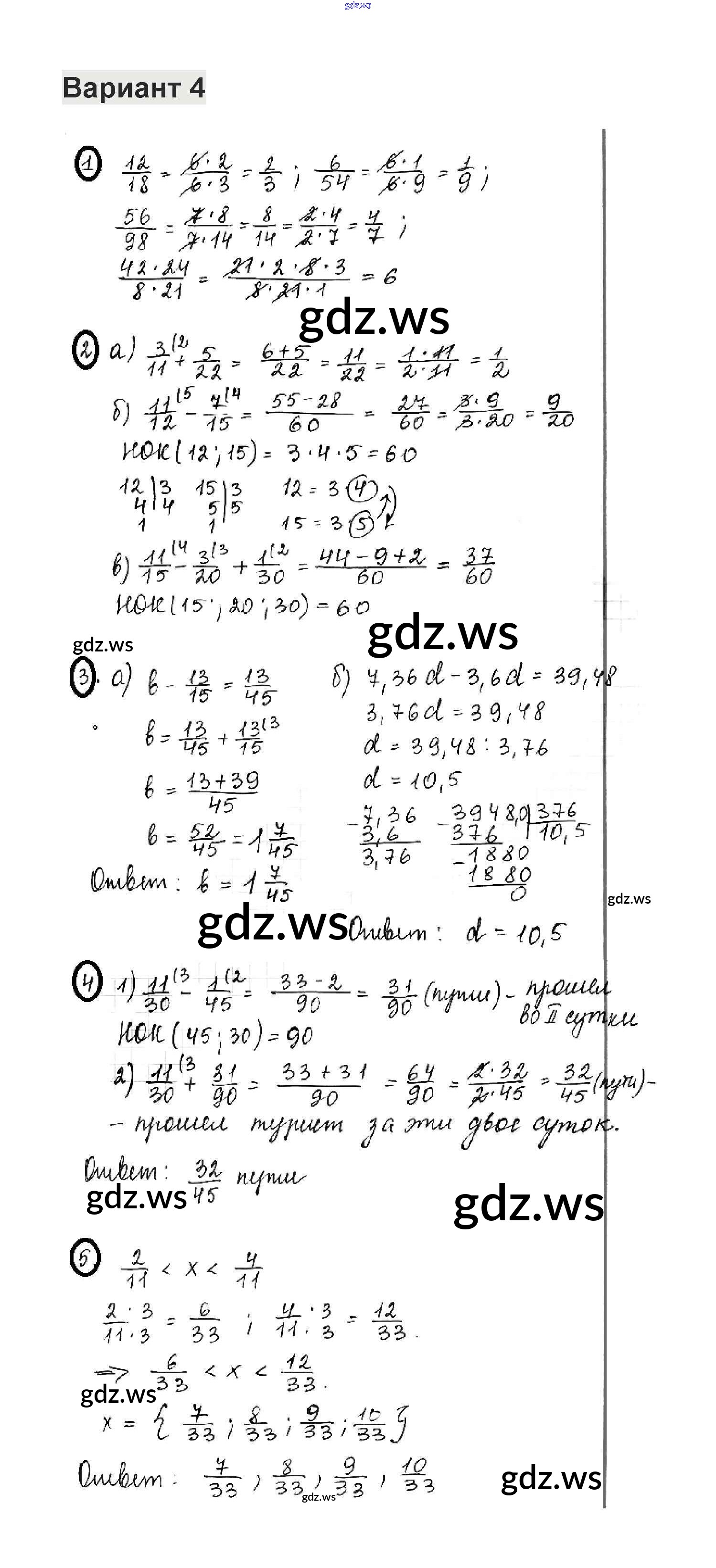 Готовый и полный ответ к КР-2. Варианты - Математике 6 класс Жохов Контрольные работы ФГОС