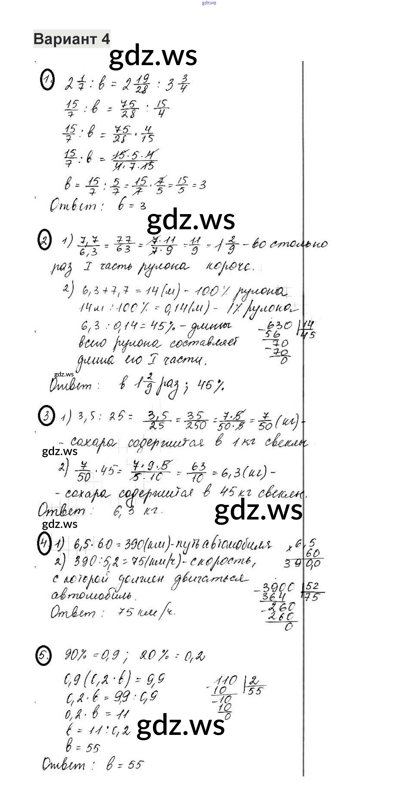 Готовый и полный ответ к КР-7. Варианты - Математике 6 класс Жохов Контрольные работы ФГОС