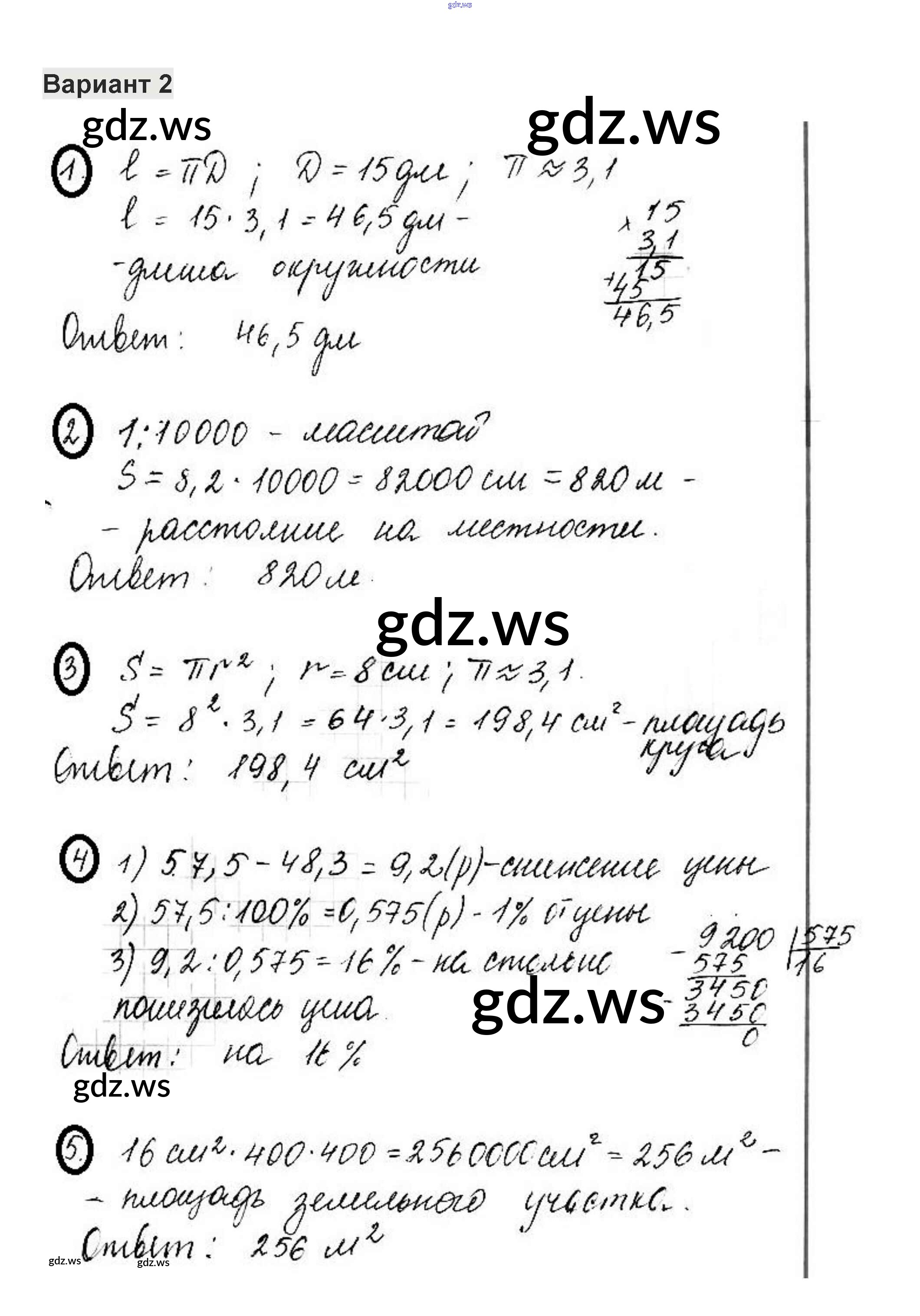 Готовый и полный ответ к КР-8. Варианты - Математике 6 класс Жохов Контрольные работы ФГОС