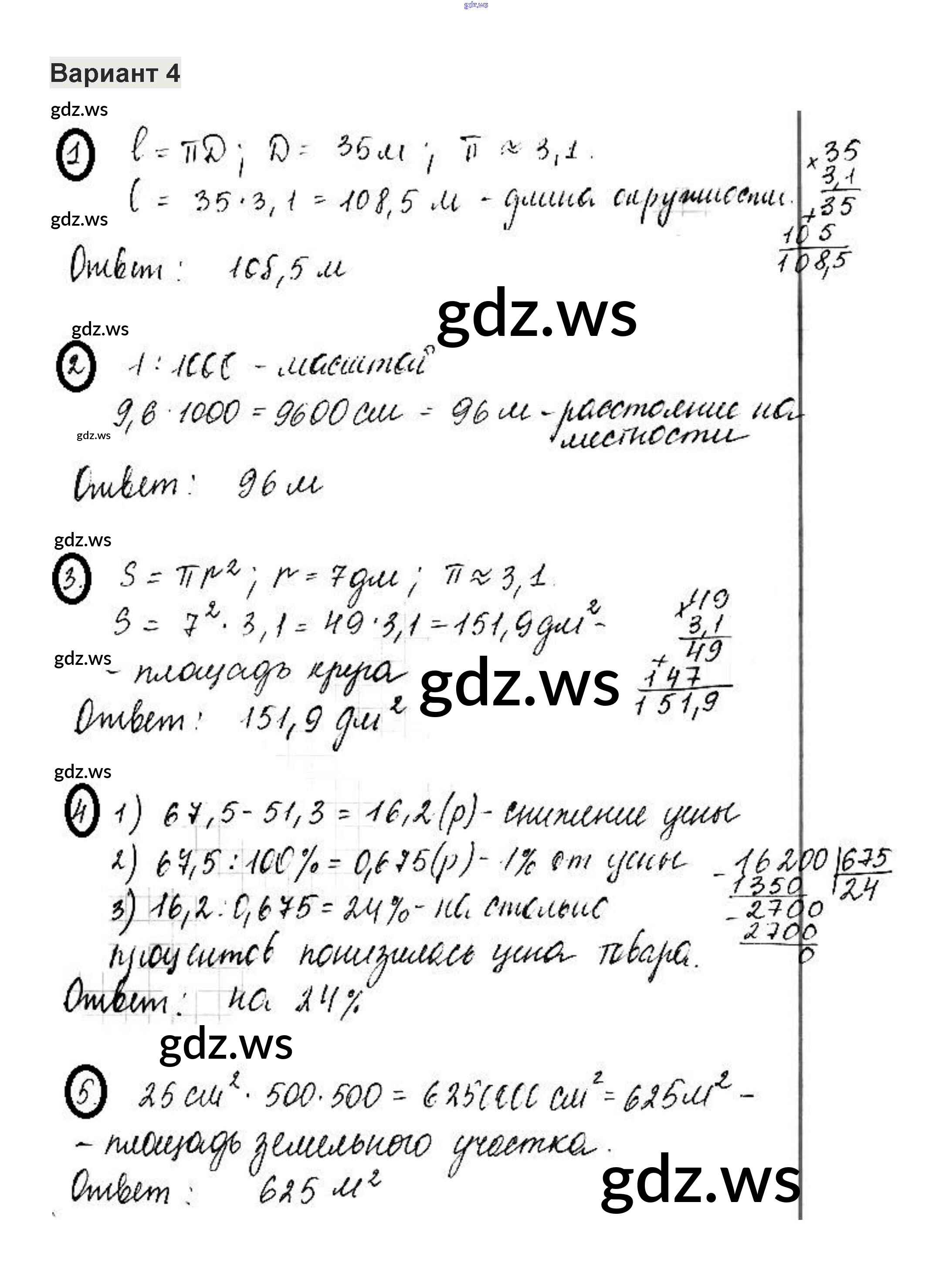 Готовый и полный ответ к КР-8. Варианты - Математике 6 класс Жохов Контрольные работы ФГОС