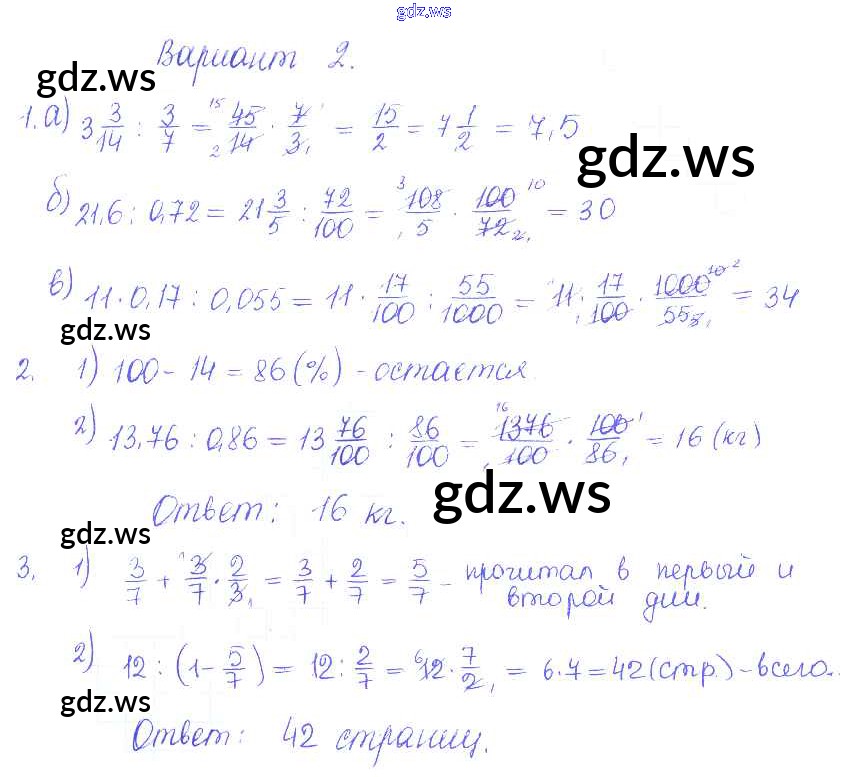 Готовый и полный ответ к СР-18. Варианты Самостоятельные работы - Математике 6 класс Журавлев Контрольные и самостоятельные работы УМК ФГОС