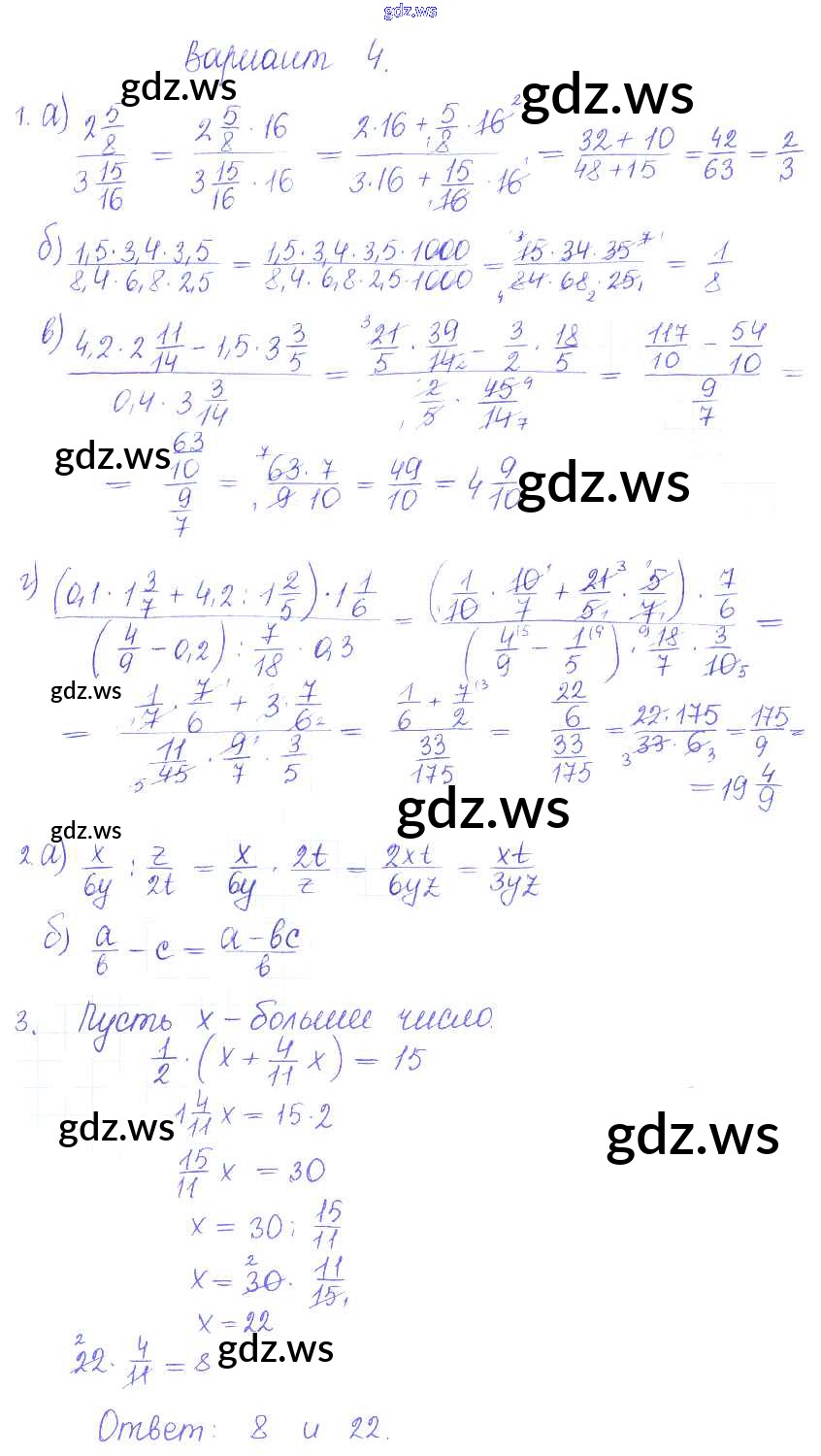 Готовый и полный ответ к СР-19. Варианты Самостоятельные работы - Математике 6 класс Журавлев Контрольные и самостоятельные работы УМК ФГОС