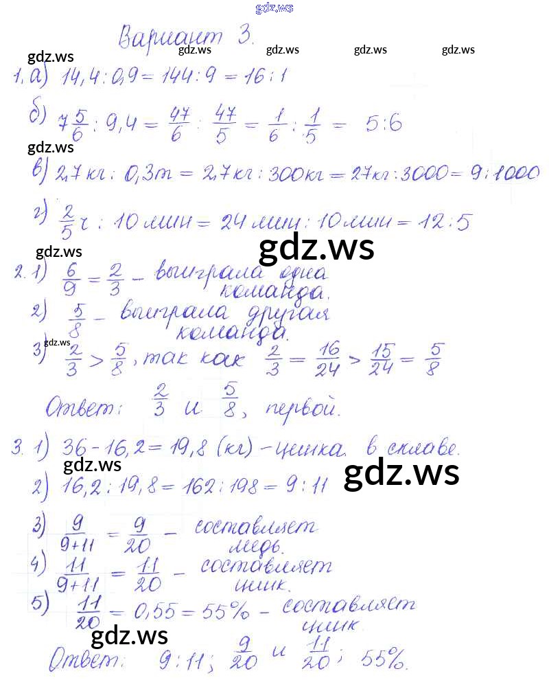 Готовый и полный ответ к СР-20. Варианты Самостоятельные работы - Математике 6 класс Журавлев Контрольные и самостоятельные работы УМК ФГОС