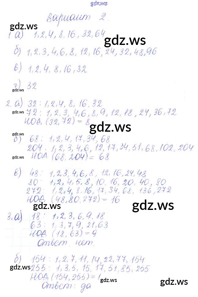 Готовый и полный ответ к СР-6. Варианты Самостоятельные работы - Математике 6 класс Журавлев Контрольные и самостоятельные работы УМК ФГОС