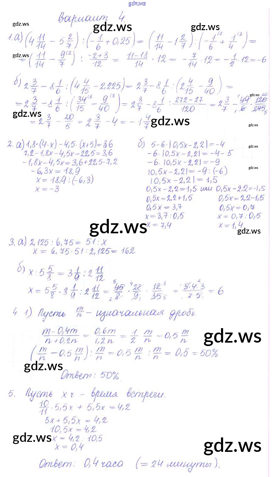 Готовый и полный ответ к КР-10. Варианты Контрольные работы - Математике 6 класс Журавлев Контрольные и самостоятельные работы УМК ФГОС