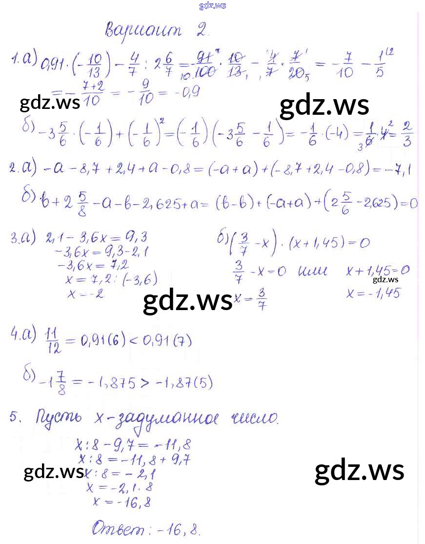 Готовый и полный ответ к КР-7. Варианты Контрольные работы - Математике 6 класс Журавлев Контрольные и самостоятельные работы УМК ФГОС