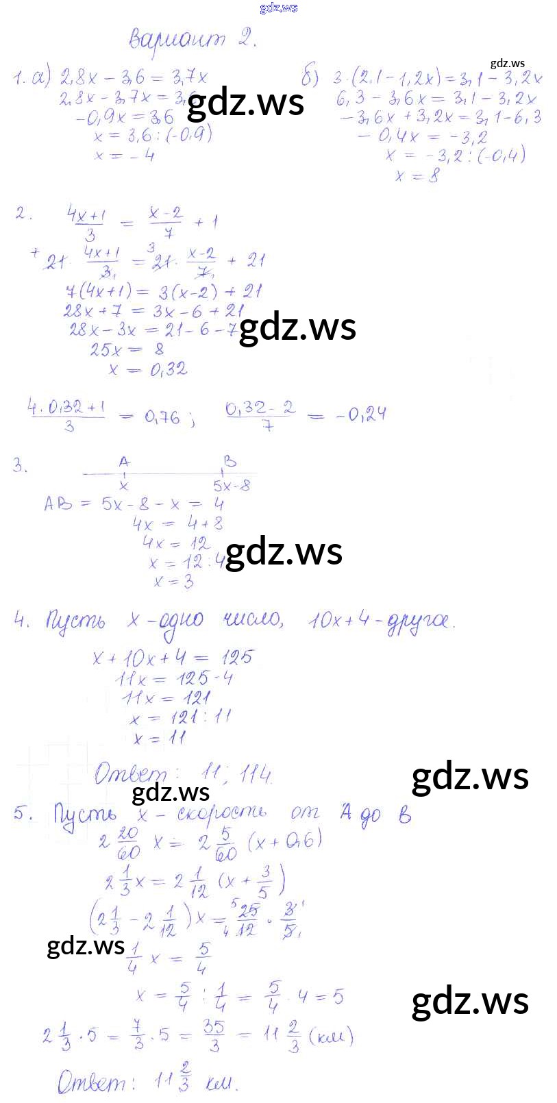 Готовый и полный ответ к КР-8. Варианты Контрольные работы - Математике 6 класс Журавлев Контрольные и самостоятельные работы УМК ФГОС