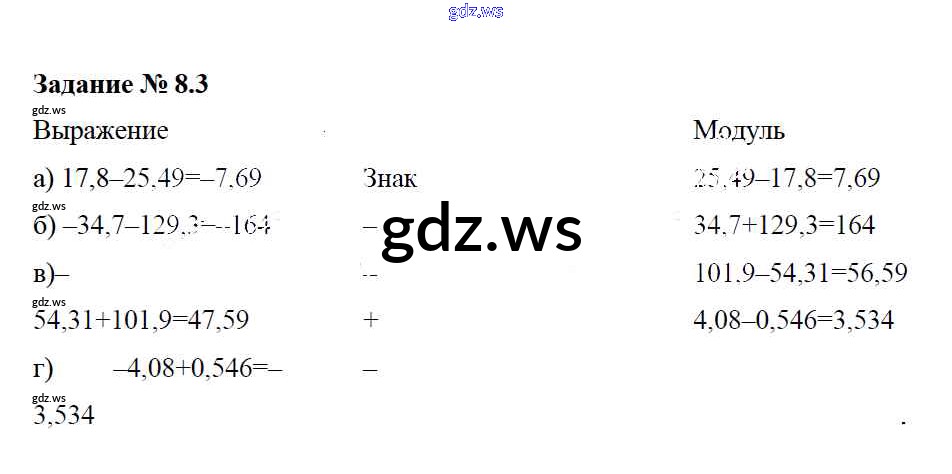 Готовый и полный ответ к §8. Правило вычисления значения алгебраической суммы двух чисел - Математике 6 класс Зубарева Рабочая тетрадь ФГОС