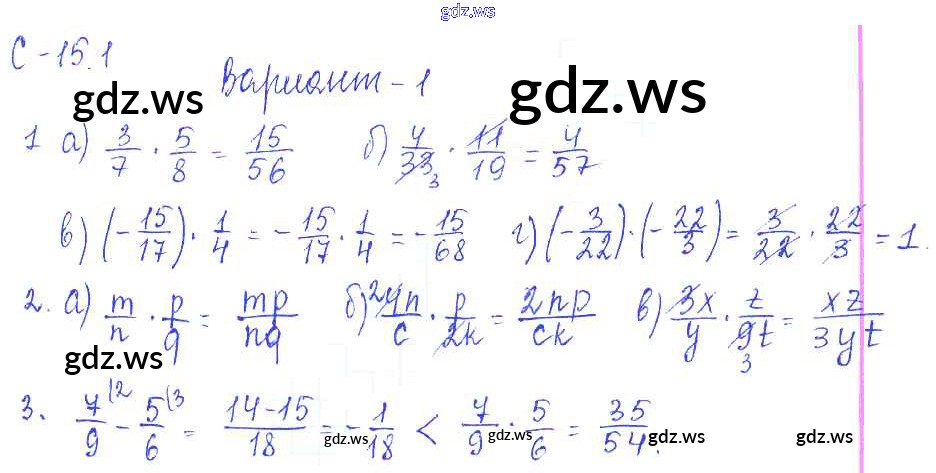 Готовый и полный ответ к 1. Варианты СР-15 - Математике 6 класс Зубарева Самостоятельные работы ФГОС