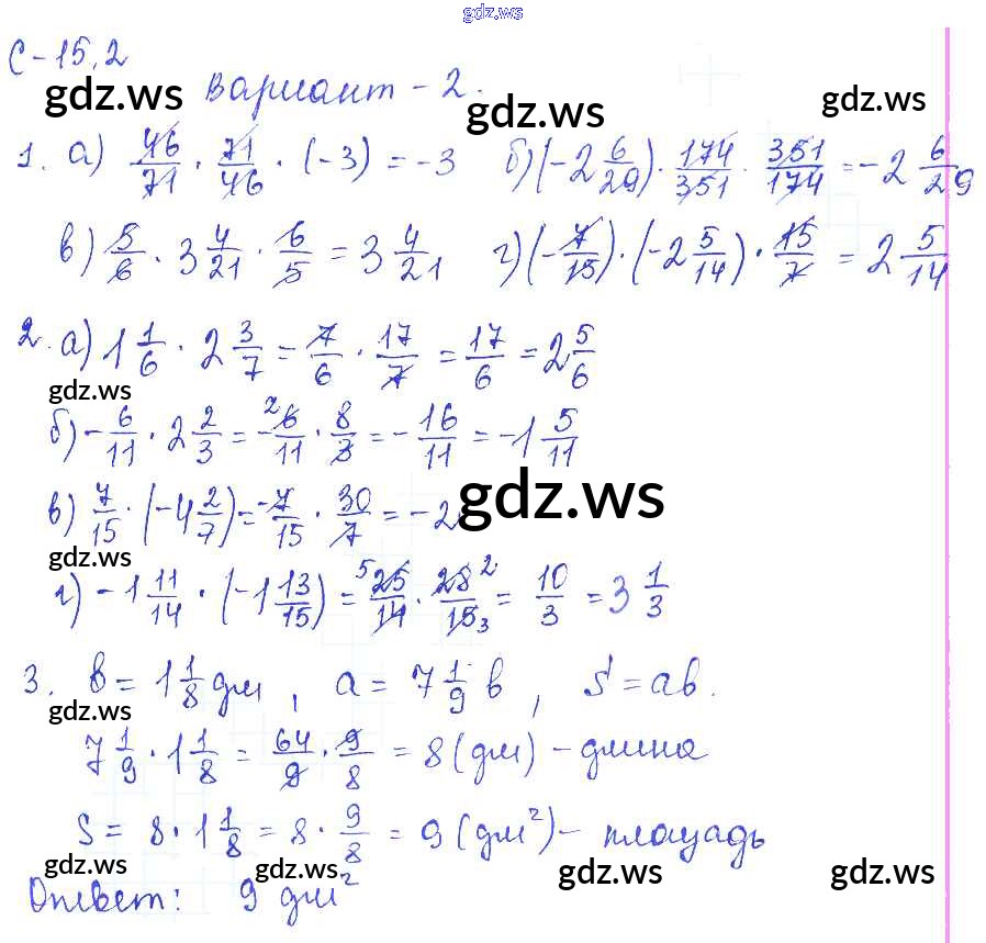 Готовый и полный ответ к 2. Варианты СР-15 - Математике 6 класс Зубарева Самостоятельные работы ФГОС