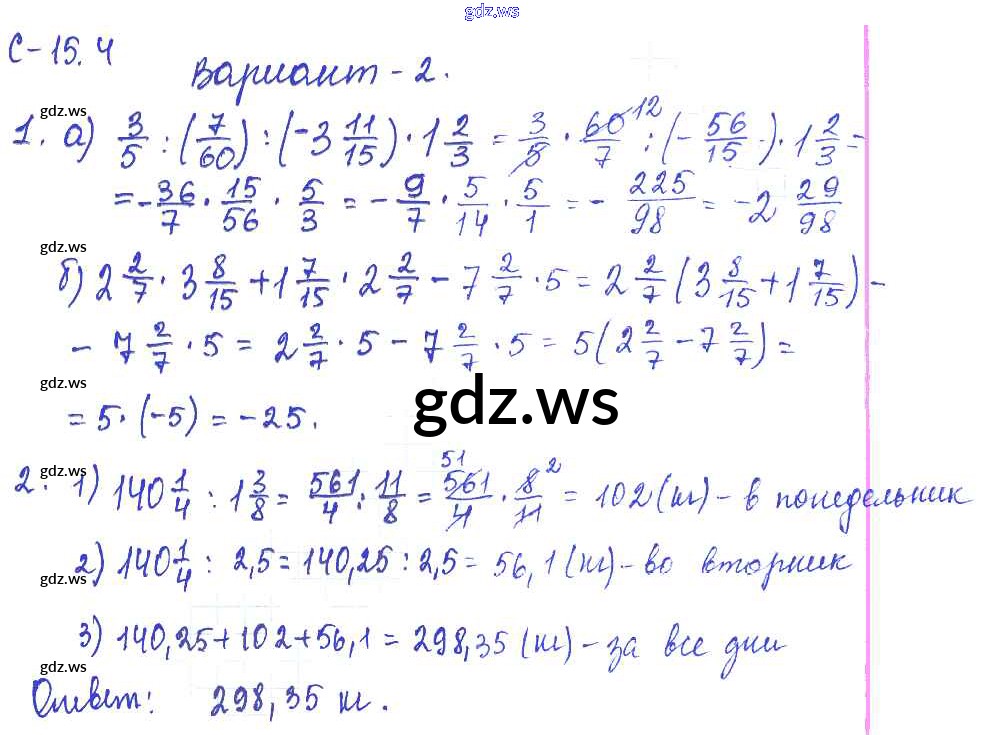 Готовый ответ 4. Варианты СР-15 - Математике 6 класс Зубарева Самостоятельные работы ФГОС